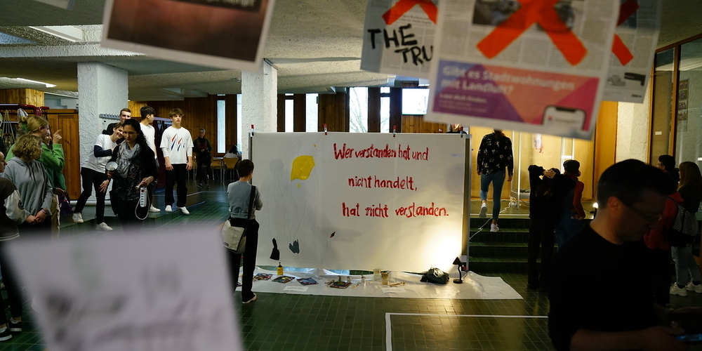 Beeindruckende und eindringliche Kunstinterventionen in der Eingangshalle empfingen die überaus