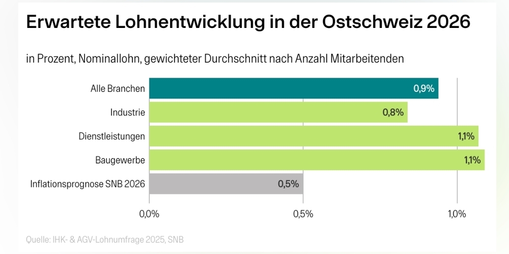 Für das kommende Jahr dominieren speziell in der Industrie die Unsicherheiten im Auslandgeschäft. Das zeigt die jährliche Lohnumfrage der IHK St.Gallen-Appenzell, der IHK Thurgau sowie der regionalen Arbeitgeberverbände der Ostschweiz.