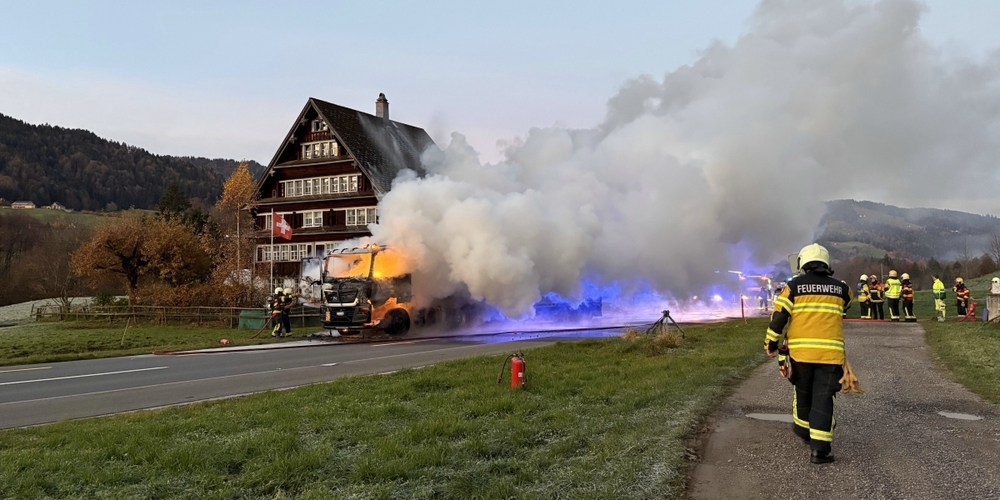 Ebnat-Kappel: Lastwagen in Vollbrand geraten