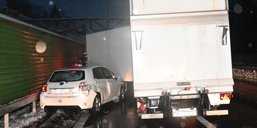 Der 37-jährige Mann fuhr mit seinem Auto auf dem Überholstreifen der Autobahn A1 von St.Gallen in Richtung Zürich. Gleichzeitig fuhr der 28-jährige Mann mit seinem Lieferwagen samt Anhänger auf dem Normalstreifen in dieselbe Richtung. Der 37-Jährige musste auf dem Überholstreifen verkehrsbedingt abbremsen und verlor dadurch die Kontrolle über sein Auto. Das Auto des 37-jährigen Mannes geriet auf den Normalstreifen und kollidierte mit der Lieferwagenkombination des 28-Jährigen. Aufgrund der Kollision wurden die Fahrzeuge nach links abgewiesen und prallten in die Leitplanke, wo sie zum Stillstand kamen. Durch den Unfall wurden beide Männer eher leicht verletzt. Sie wurden vom Rettungsdienst ins Spital gebracht. An den Fahrzeugen sowie an der Strasseninfrastruktur entstand Sachschaden im Wert von rund 20'000 Franken.