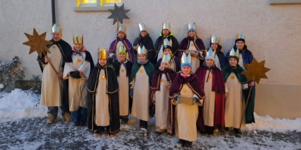 Als Sternsingerinnen und Sternsinger zogen die Kinder von Haus zu Haus, brachten Segenswünsche, sangen Lieder, sammelten Spenden für bedürftige Kinder und hinterliessen an den Türen das Kreidezeichen C+M+B mit der Jahreszahl.