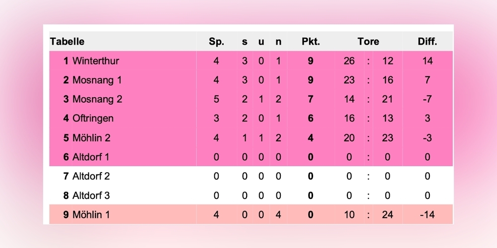 2. Gegner war Winterthur, auch ein starkes Team aus der Nat. A. Kurz vor der Pause konnte Winterthur mit 3:2 mit einem Eckball in Führung gehen. Nach der Pause drückten die Mosliger wieder auf den Ausgleich, aber sie hatten kein Glück mehr. Winterthur spielt clever und nutzte die Fehler der Toggenburger aus. So feierte Winterthur am Schluss einen hohen 7:2 Sieg, zu hoch aus Mosliger Sicht.