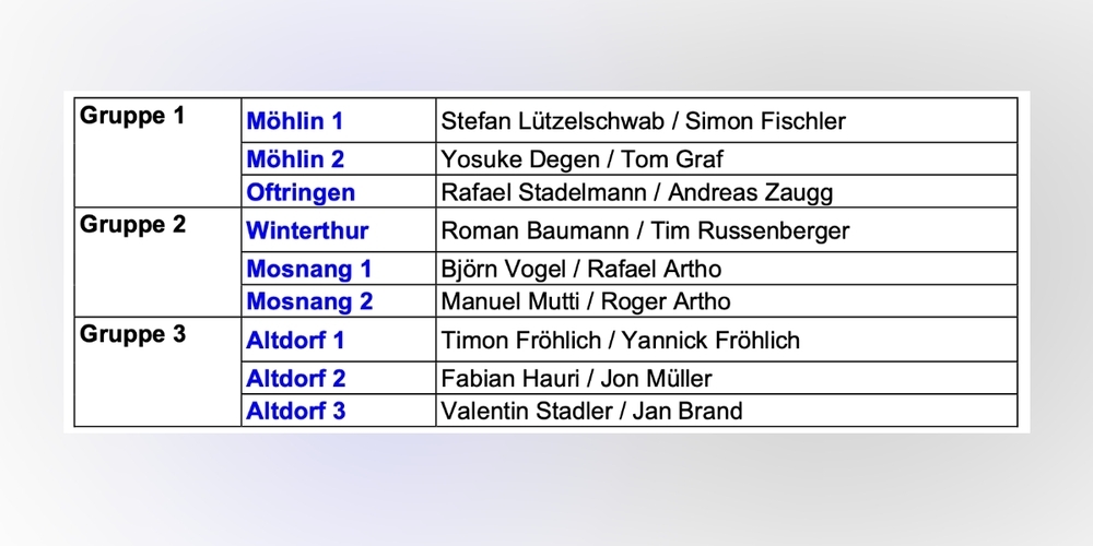 Nach dem Startspiel Mosnang 1 gegen Mosnang 2 und dem Sieg für Mosnang 2 mit 4:2 standen nochmals 4 Spiele auf dem Spielplan für Roger Artho und Manuel Mutti als Mosnang 2.